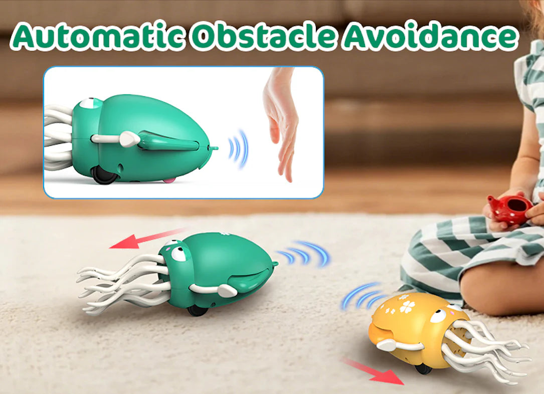 OctoDancer® is built with intelligent obstacle-avoidance sensors that detect walls, furniture, and toys — automatically turning away before collisions.